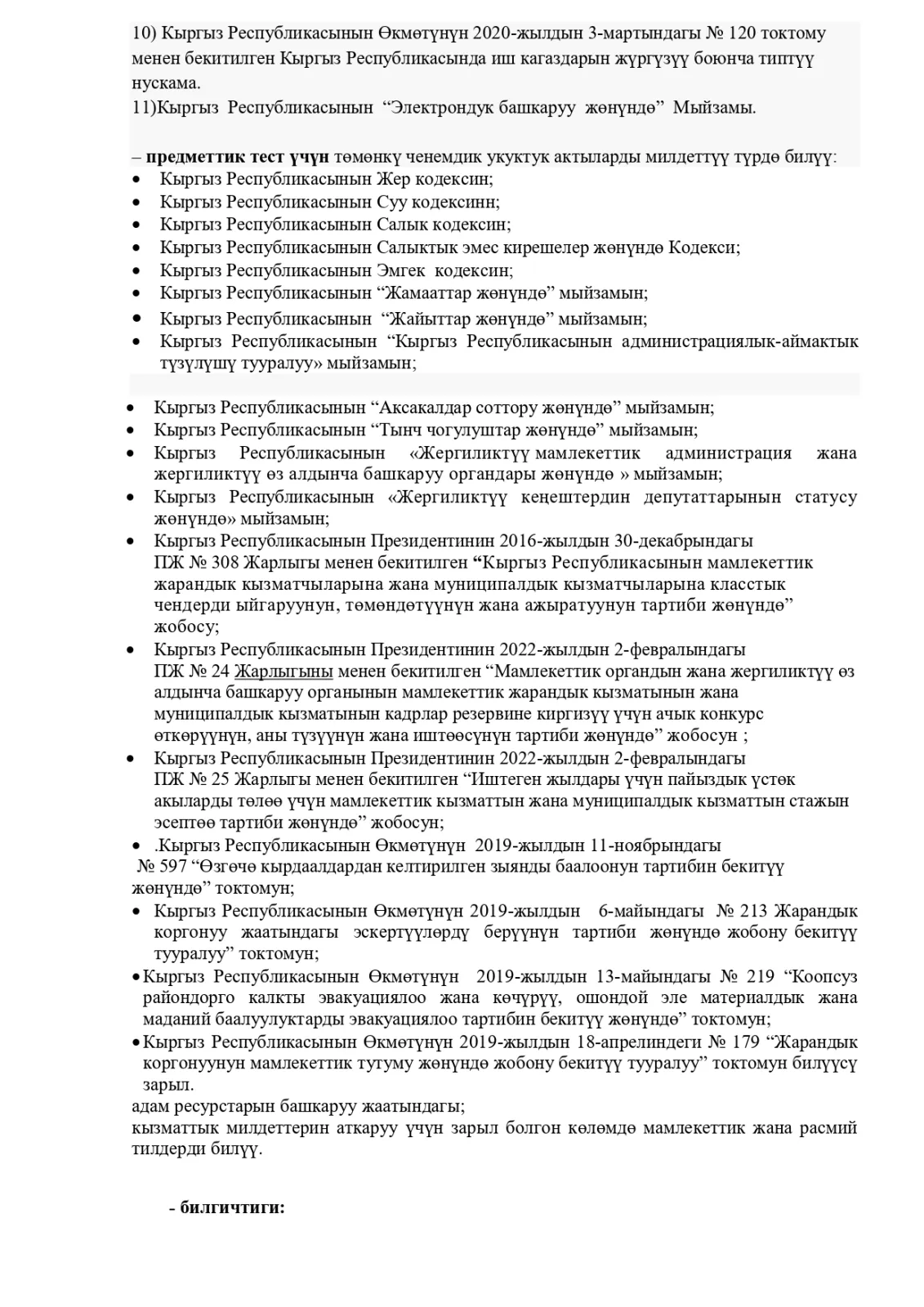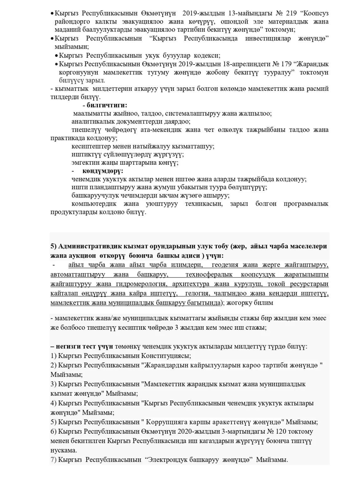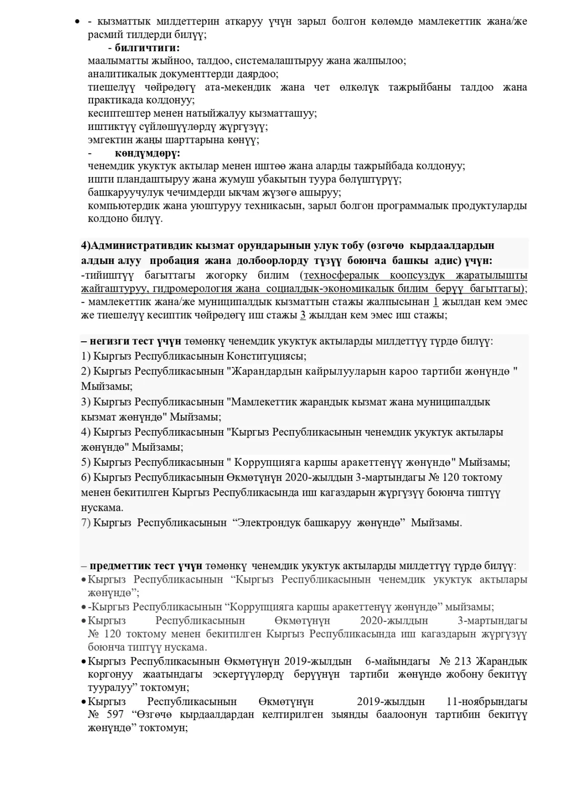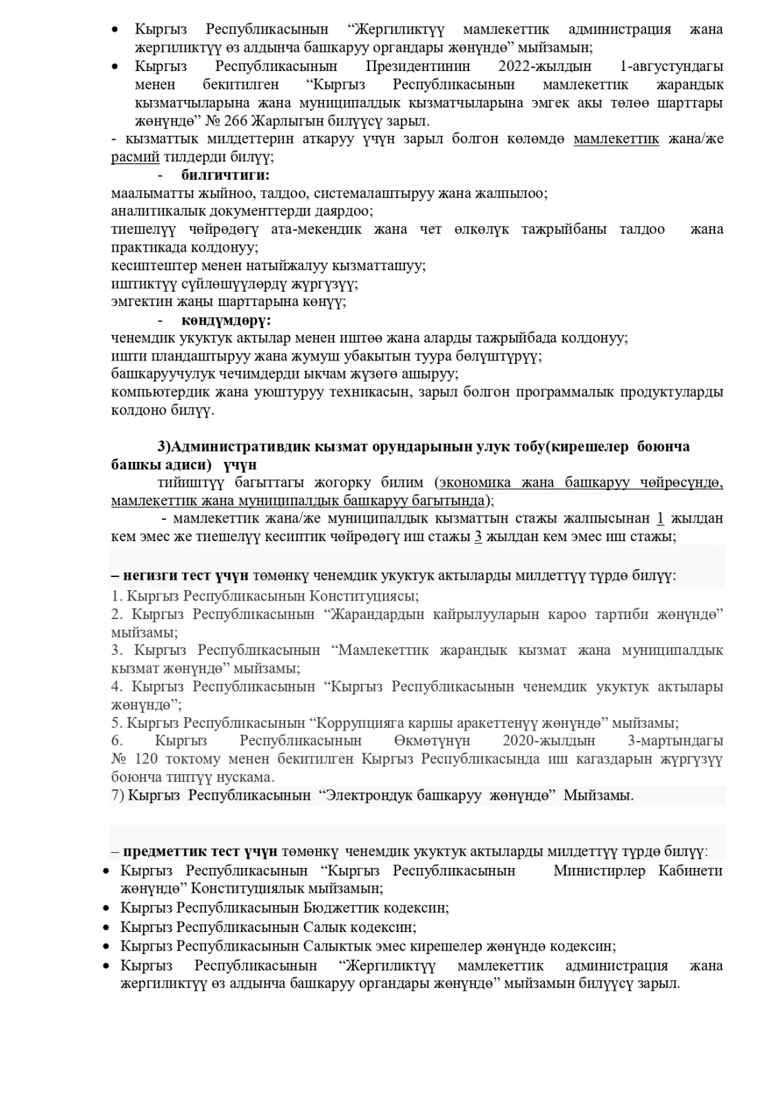 Талас районунун Беш-Таш айыл өкмөтү Кыргыз Республикасынын «Мамлекеттик жарандык кызмат жана муниципалдык кызмат жөнүндө» мыйзамынын негизинде башкы, улук жана кенже кызмат орундарынын топторуна кадрлар резервине киргизүү үчүн ачык конкурс жарыялайт